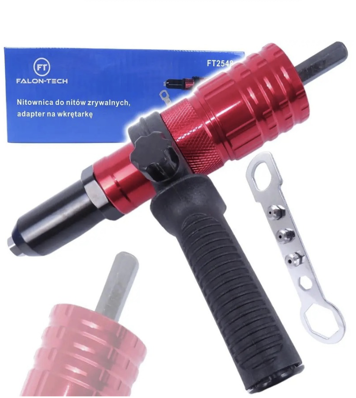 Цей заклепочник є ідеальним вибором для мобільних робіт, де немає доступу до пневматичної системи. Він замінює як пневматичні, так і ручні заклепочні пістолети, а також сумісний із шуруповертами та дрилями. Все це упаковано у зручний кейс для транспортування та зберігання.